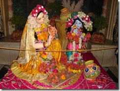 a) “The Pankajanabhi Lord accepts the arca-vigraha (His transcendental form) in different elements, namely a form within the mind, a form made of wood, a form made of earth, a form made of metal, a form made of jewel, a form made of paint, a form drawn on sand, etc. All such forms of the Lord are always decorated with garlands of lotus flowers, and there should be a soothing atmosphere in the temple of worship to attract the burning attention of the nondevotees always engaged in material wranglings.”